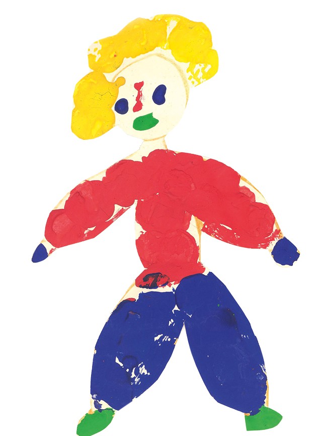 Die mit Farbe bepinselten Korken werden auf das Papier gesetzt. Die Kinder versuchen nun Haare, Pullover, Hose etc. in verschiedenen Farben mit dem Korkdruck zu füllen. Für Nase, Mund und Augen kann ein Korkenrand benutzt werden.