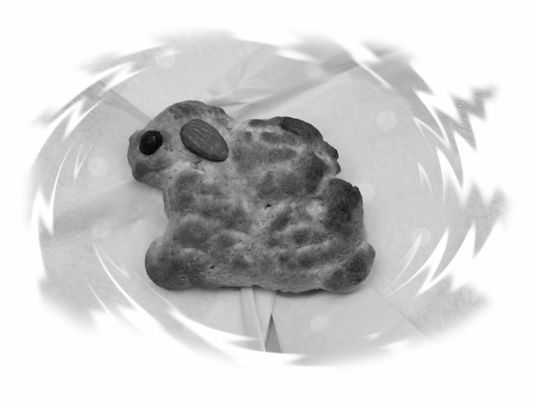 Daraus Rollen formen und jedem Kind ein Stück Teig geben – jedes Kind darf nun nach Wunsch einen Osterhasen oder ein Osterlamm daraus formen.